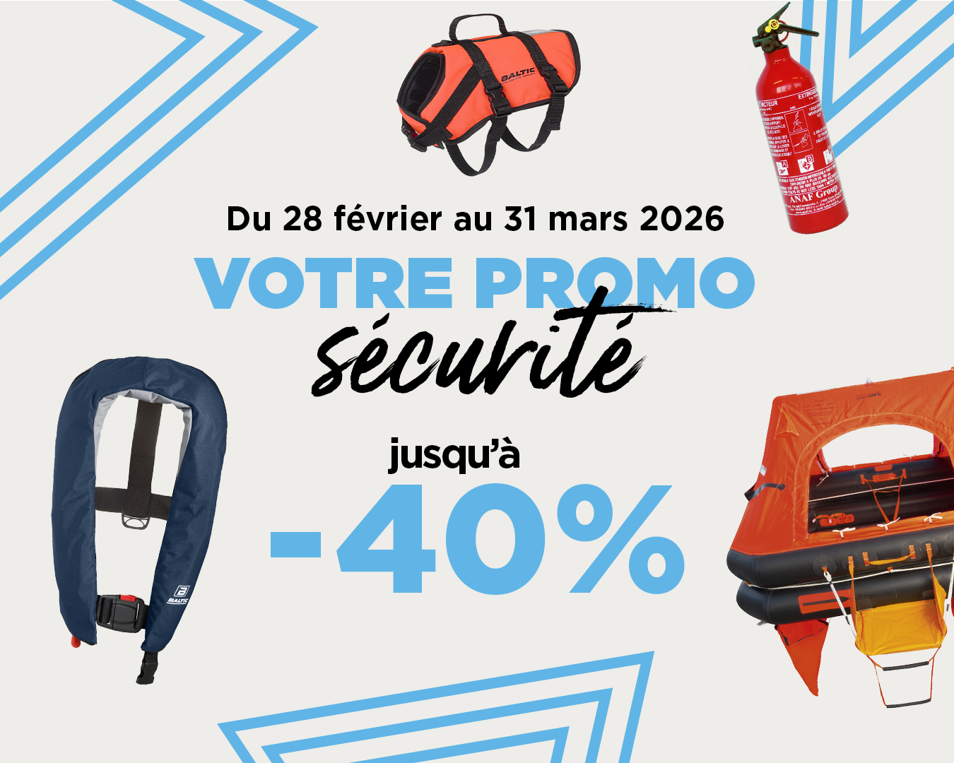 Équipez votre bateau et naviguez en toute sérénité avec jusqu’à -40% sur votre sélection de produits sécurité : gilets de sauvetage, compas magnétiques, lampes torches, longes, VHF fixes, balises personnelles…